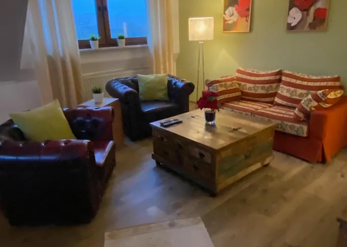 Das Apartment Paradies in der Vulkaneifel - Panoramablick und Wintergarten für jedes Wetter Burgbrohl liegt in einer Entfernung von 3 km vom Traumpfad Höhlen- und Schluchtensteig und bietet WLAN für Geschäftsreisende und Urlauber. Die Burg Olbrück ist 15 Minuten mit dem Auto von den Apartments entfernt.